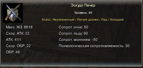 Примерный дроп: Уникальный предмет (Шпага Кастора 40лвл, Щит Кастора 40лвл), Оружие\Одежда 36лвл