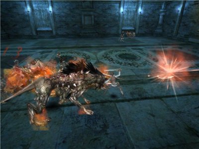 Описание: Выглядит как большой цербер, охваченный пламенем.