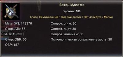 Уровень: 100 -Квэстовый босс (Квэст на Грэндис)