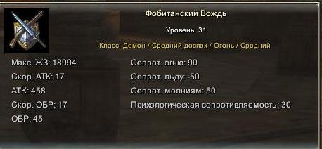 Скилы: Повторяющаяся атака (откидывает), страх (небольшой радиус).